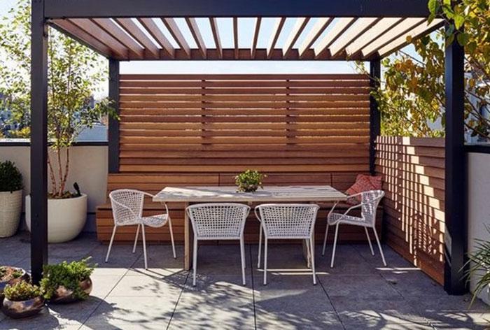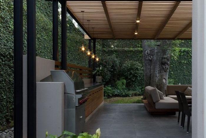 Outdoor Kitchen Pergola: It can help defining your outdoor dining area and cooking space by constructing an open-air structure, providing light, fan and a great dining experience.
